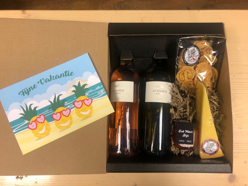Standaard pakketten? Daar doen we niet aan, we helpen je graag om een origineel pakket samen te stellen. Zoet, hartig, een bierpakket of een mooie set wijnen alles is mogelijk.